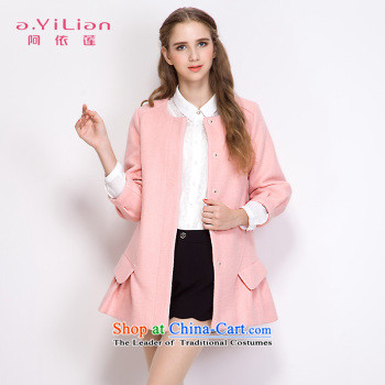 Tearing silk 2015 autumn and winter new Wild solid color pocket long coat round-neck collar long-sleeved jacket female 51150638 gross? pink聽S