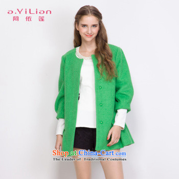 Aida 2015 Winter New Lin female pure color wild temperament round-neck collar 7 Cuff Gross material thickness jacket coat? CA43397232 Heung-grass Green聽S, Aida Lin (A.YILIAN) , , , shopping on the Internet