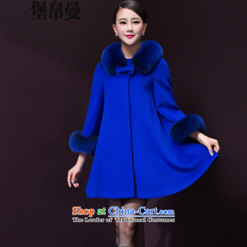 Pull economy- 2015 autumn and winter new women's winter coats female hair_??? gross cloak jacket overcoat 8016 Royal Blue M