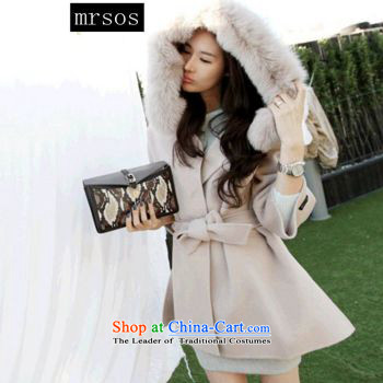 Lucie, gross? Korean Women's jacket coat 2015 autumn and winter new cloak cashmere overcoat, long hair collar cap gross MN1562 coats gray聽XL?