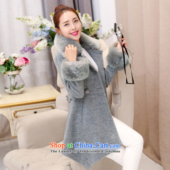 Lucie, gross? Korean Women's jacket coat 2015 autumn and winter new cloak cashmere overcoat, long hair collar cap gross MN1562 coats gray聽XL?