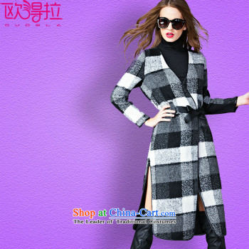 Dili Sophie _DIROU_ gross? 2015 female new coat Winter Female England latticed wool a wool coat black and white checkered DD617聽XXL