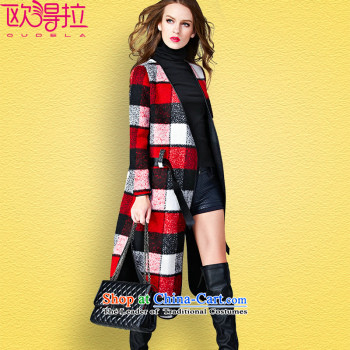 Also, 2015 Winter Female Western big latticed long-sleeved tether strap buckle single row long hair a wool coat jacket female red聽S