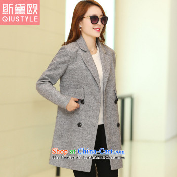 Song and 2015 gross jacket female medium to long?_ Winter Han Version fitted with large number of Sau San Winter Female fitting wool a wool coat light gray S