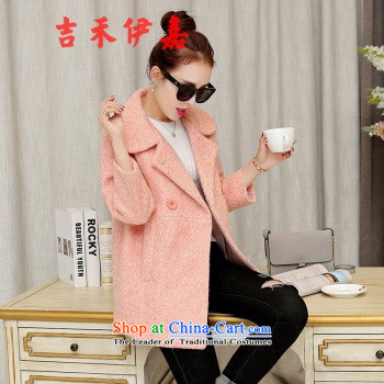 Gil Wo Ika red jacket girl in gross? Long autumn 2015 new lapel cashmere overcoat Sau San female pure color woolen coat pink聽M