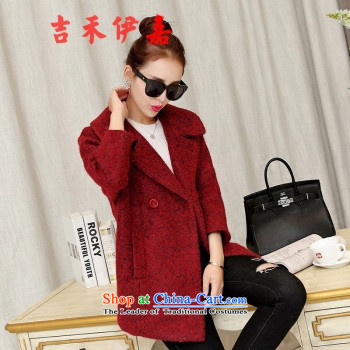 Gil Wo Ika gross? Women 2015 winter coats new large Korean Sau San Wild hair for long a wool coat, Red聽L