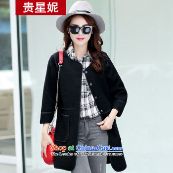 Xin Fei Fan 2015 autumn and winter new Korean sweet jacket coat?   Gross stylish girl in the video thin long coats black聽L-ni