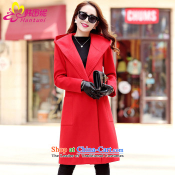 Xuan ina 2015 autumn and winter coats new gross? female jacket, long streaks in the stylish Korean cap windbreaker female RED M