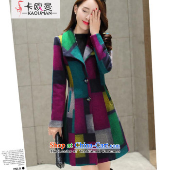 Cayman commercial population Ceremony聽2015 autumn and winter new gross girls jacket? Long Korean Sau San grid windbreaker a wool coat聽XXXL Hagupit
