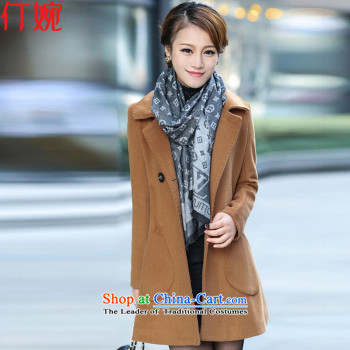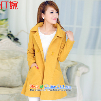 2015 Fall_Winter Collections new Korean Sau San over the medium to longer term gross large female jacket is double-a wool coat yellow large spot M