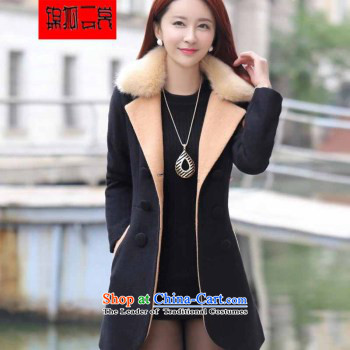 Sin has so gross jacket female 2015 new products fall Korean modern color plane collision video     in the thin long wool coat on the gray under this navy blue聽 XL