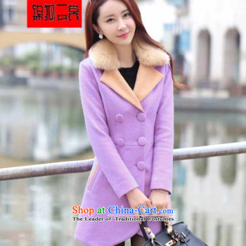 All Daphne 2015 autumn and winter new Korean female jacket is   Gross double-lace under the medium to long term, a wool coat purple聽M