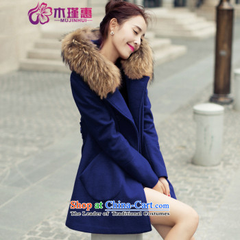 Mrs and cashmere overcoat female woolen coat girl聽in the new winter 2015 long coats gross? For coats jacket fox gross blue聽 XL