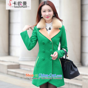 2015 Autumn and winter Zz_ff new Korean fashion, long, thin hair? Graphics Sau San Jacket coat a wool coat female聽WT5361聽GREEN M