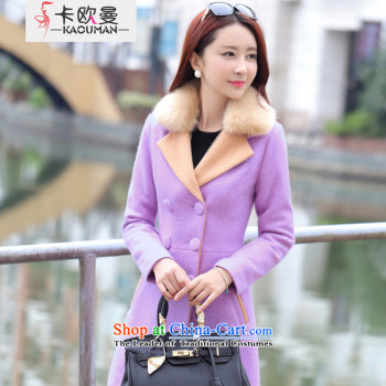 Oehe 2015 winter clothing new Korean version in Sau San long jacket, stylish girl video thin lapel long-sleeved gross? coats purple XL