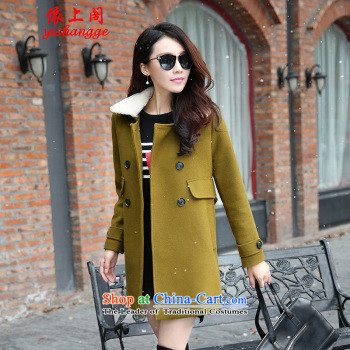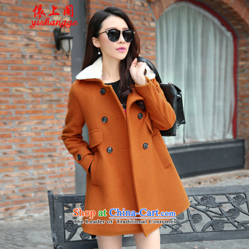 Non-cashmere overcoat Kim guitar woolen coat female 2015 new winter clothing in long Sau San double-Women's gross? jacket聽1511聽mustard yellow聽M