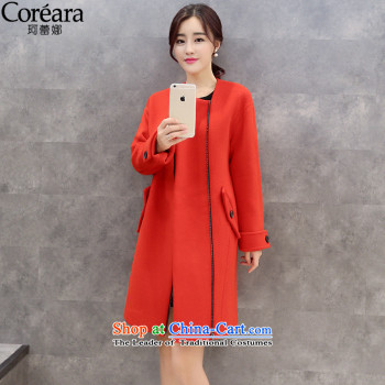 Sin has聽2015 gross? new products in the autumn and winter long a wool coat video thin thick Korean jacket RED聽M Gross?
