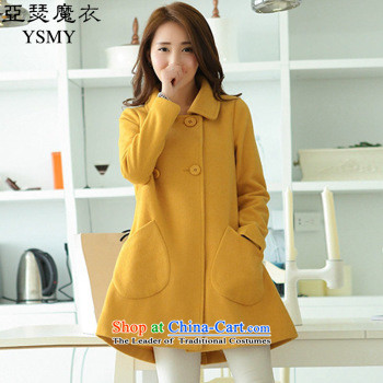 Korea Yae Jin 2015 autumn and winter new gross girls jacket? Long lapel wool a wool coat video thin yellow聽L