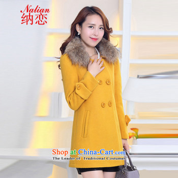 The land of  autumn and winter 2015 Women's new Korean version of a Korean version of gross? jacket coat Women?   Gross Yellow M