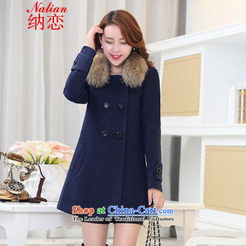 The CD is No. 2015 autumn and winter coats of new products cashmere female Korean version 89.7 in long jacket?_ woolen coat really fox gross can be shirked blue XL