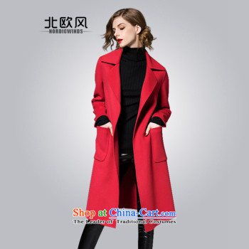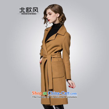 The Nordic wind cashmere overcoat girl of聽autumn and winter 2015 new products for women in Europe and the solid color long lapel pockets bow tie strap gross and female color jacket?聽xl,nordic winds,,, shopping on the Internet