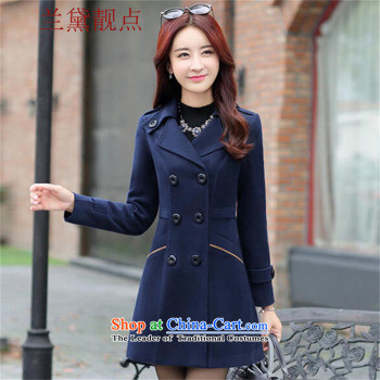 Shi Yi No. 2015 autumn and winter new wool a wool coat female Korean pure colors plus cotton thin, long, video gross a wool coat female jacket Tibetan Blue聽M