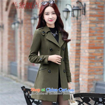 Lok-machi 2015 Autumn new gross lapel coat? a wool coat in long woolen coat, double-dark green jacket聽S_155