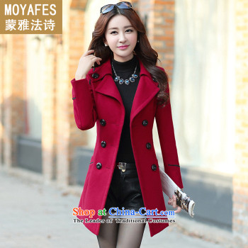 Montevideo Jaffa poetry聽2015 autumn and winter coats new gross?   in the female long double-jacket female 9858? wine red聽XL