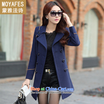Shi Yi No. 2015 autumn and winter new wool a wool coat female Korean pure colors plus cotton thin, long, video gross a wool coat female jacket Tibetan Blue聽M