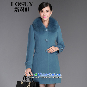 M 2015 New Sangyeongpyo Contragate Winter Sweater? long-sleeved jacket Fox for gross a wool coat Korean female blue Sau San XL