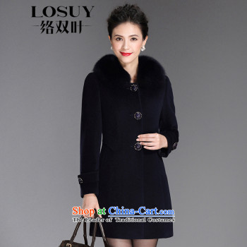 Contact Us dual leaf fall 2015 new boxed temperament Sau San lapel a wool coat girl in long double-video thin wind jacket navy S