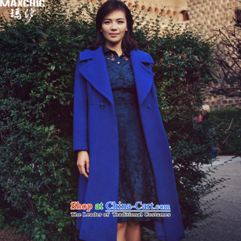 The elections of the same health maxchic stars Marguerite Hsichih 2015 autumn and winter elegant large roll collar long-sleeved Sau San long wool coat female 20972? Blue聽M