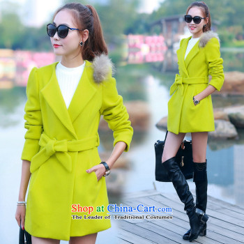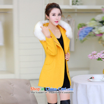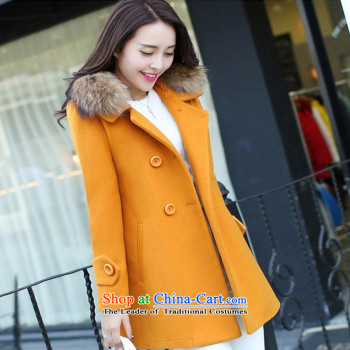 Receive new autumn 2015 Nga Korean temperament coats that long-Nagymaros collar coats jacket women gross? LMY109 yellow -A,聽L