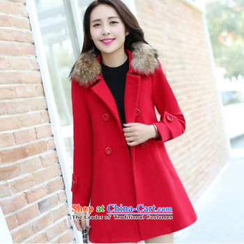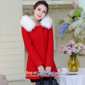 Xuan ina 2015 autumn and winter coats new gross? female jacket, long streaks in the stylish Korean cap windbreaker female RED聽M