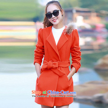 Thus Chu YFL headquarters women 2015 new autumn and winter coats female Autumn and Winter Sweater,high-end woolen coat, Water Sable Hair collar windbreaker gross coats orange聽M?