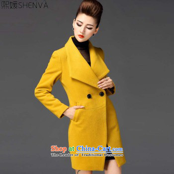 Lok-machi 2015 Autumn new gross jacket in long?_? coats Korean gross wild lapel of autumn and winter clothes M_160 yellow
