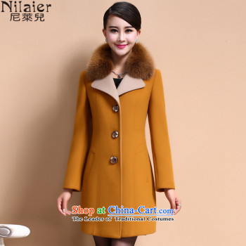 Mya Zi 2015 autumn and winter new long suit in Sau San for gross large jacket coat is medium to long term, a wool coat Yellow聽M