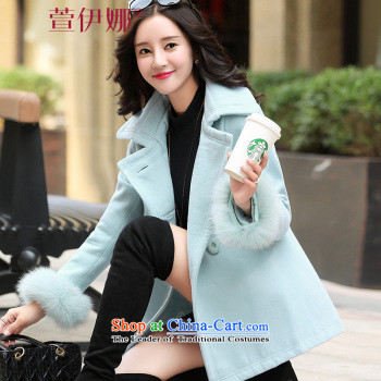 2015 Autumn and winter aimoonsa new double-wool a wool coat lapel gross? Korean female jacket ladies hair so Sau San coats blue聽L