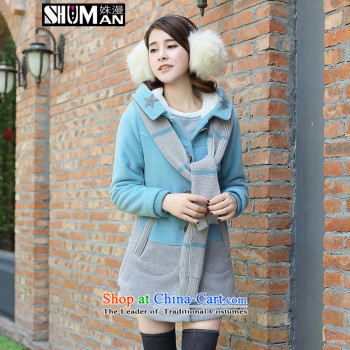 The fragrant incense snow fall and winter 2015 new products Sau San video thin coat cap in the amount so long Korean a wool coat female thick coat Blue M