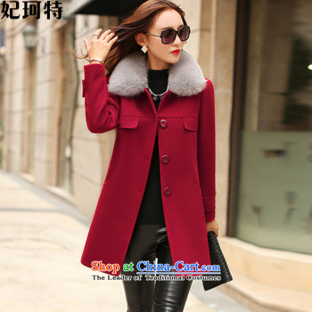 Memnarch 鐞 Connie Shop 2015 autumn and winter new Korean minimalist gross for long mother who decorated wine red jacket? wool聽XL