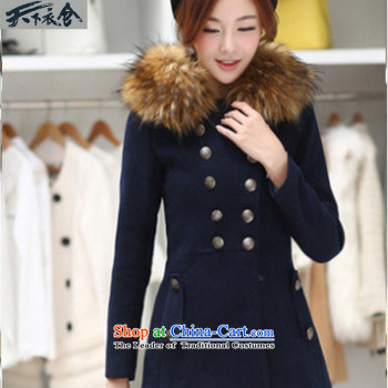 The holy day average 2015 Ying autumn and winter new Women's jacket in a compartment being decorated long hair? coats S613 Blue聽XXL