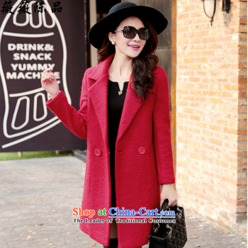 Sin has聽2015 autumn and winter new Korean girl in gross? jacket long thin thick wool Sau San video a wool coat RED聽M