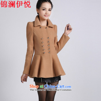 The world of Kam Yuet autumn and winter female double-pockets back arc long hair a wool coat wind jacket a doll, field preppy lovely yellow聽L