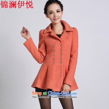 The world of Kam Yuet autumn and winter load new female lapel Sau San video thin double-gross a wool coat wind jacket suit Korean sweet gentlewoman temperament OL ORANGE聽L