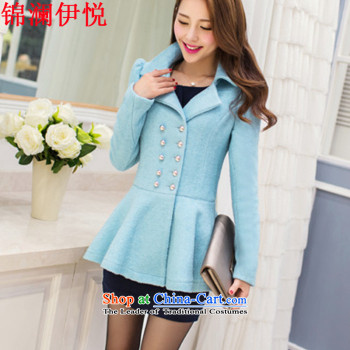 2015 Autumn and winter aimoonsa new double-wool a wool coat lapel gross? Korean female jacket ladies hair so Sau San coats blue聽L
