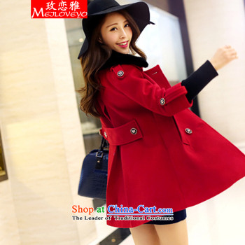 The extravagance 2015 winter wheat new Korean female jacket is     in the gross long double-gross for long-sleeved a wool coat H0116 female red in the聽XL