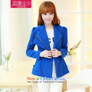 Yu ink dust autumn 2015 a new overnight for women Korean short, reverse collar is a zip cardigan coats jacket female U692 gross? royal blue聽, yu Ink dust overnight shopping on the Internet has been pressed.