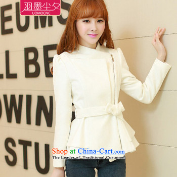 2015 Autumn and winter new stylish Korean Ladies casual wild pure color minimalist double-cap reverse collar short jacket, gross female m White聽M?