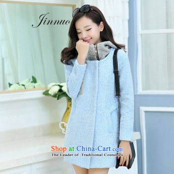 The fragrant incense snow fall and winter 2015 new products Sau San video thin coat cap in the amount so long Korean a wool coat female thick coat Blue M
