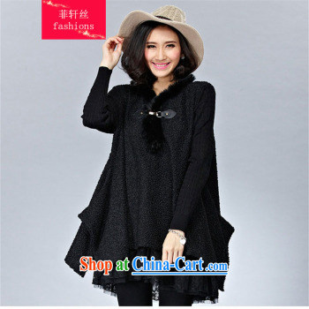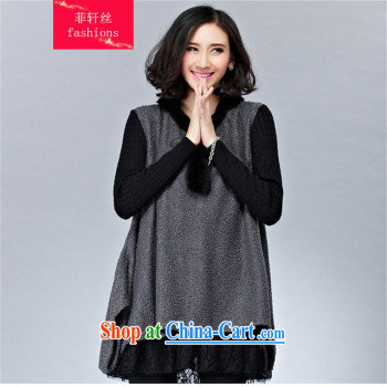 Slim Li-su 2014 autumn and winter new, larger female Korean fashion the Lamb hair and lint-free cloth cap leisure sweater, long dresses Q 6331 gray 4 XL